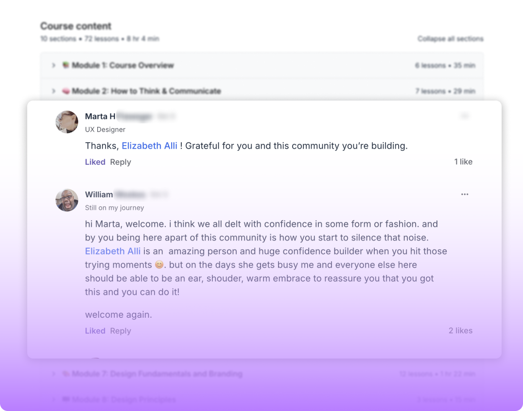One of the things students tell us they value most—sometimes even more than the coursework—is the feeling of having a real community to grow within. Inside DesignerUp, you’re not just joining a course; you’re stepping into a space filled with people who are learning, questioning, experimenting, and supporting each other in a very real and human way.