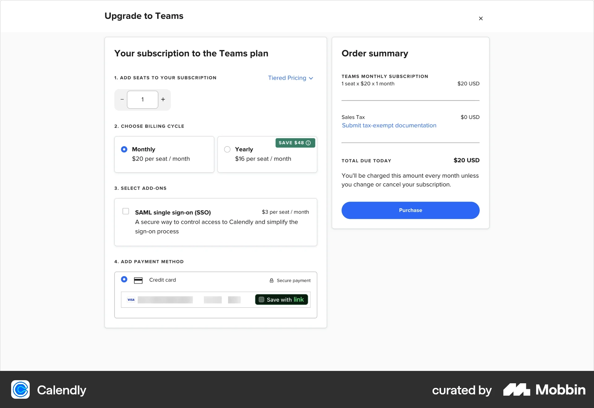 In this Calendly Teams upgrade flow, the user is already configuring their subscription.