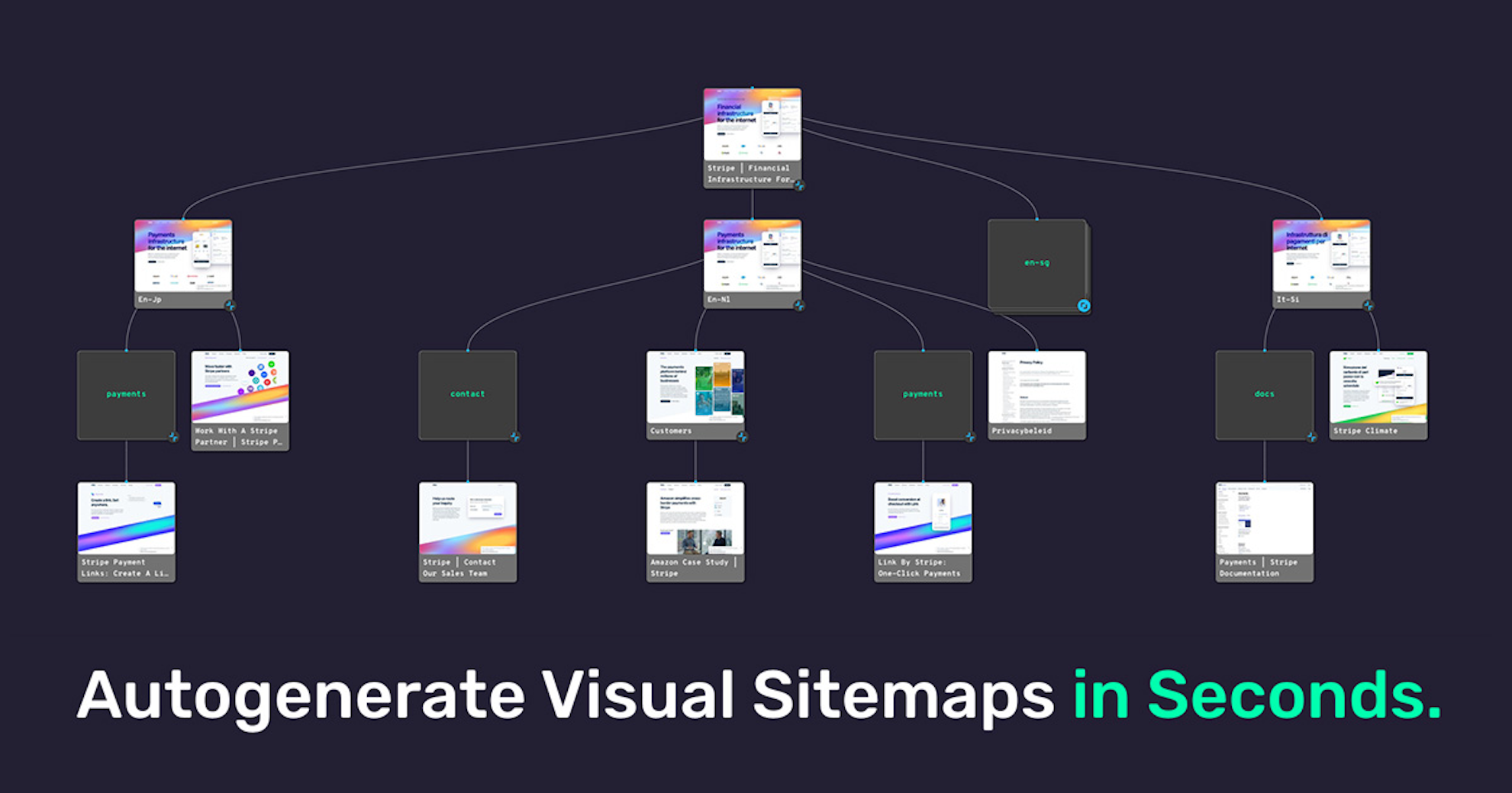Generate visual sitemaps + screenshots for live & staging websites. Run Audits > Plan Content > Create Flows for SEO, UX, and Competitor Analysis. We save tons of hours for you - and you will win more projects!